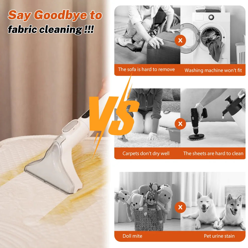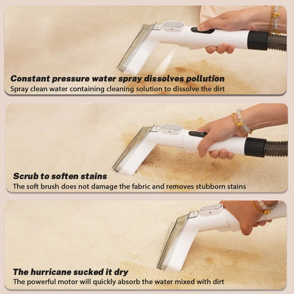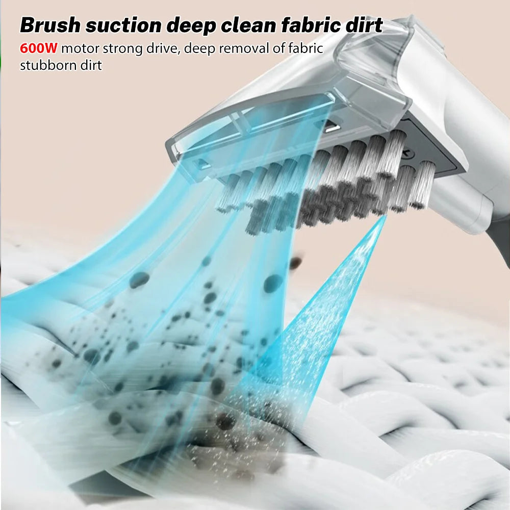 2. Szczotka ssąca natryskowa jednym pociągnięciem, głębokie czyszczenie zabrudzonych tkanin, silnik o mocy 600 W, mocny napęd, głębokie usuwanie uporczywych zabrudzeń tkanin