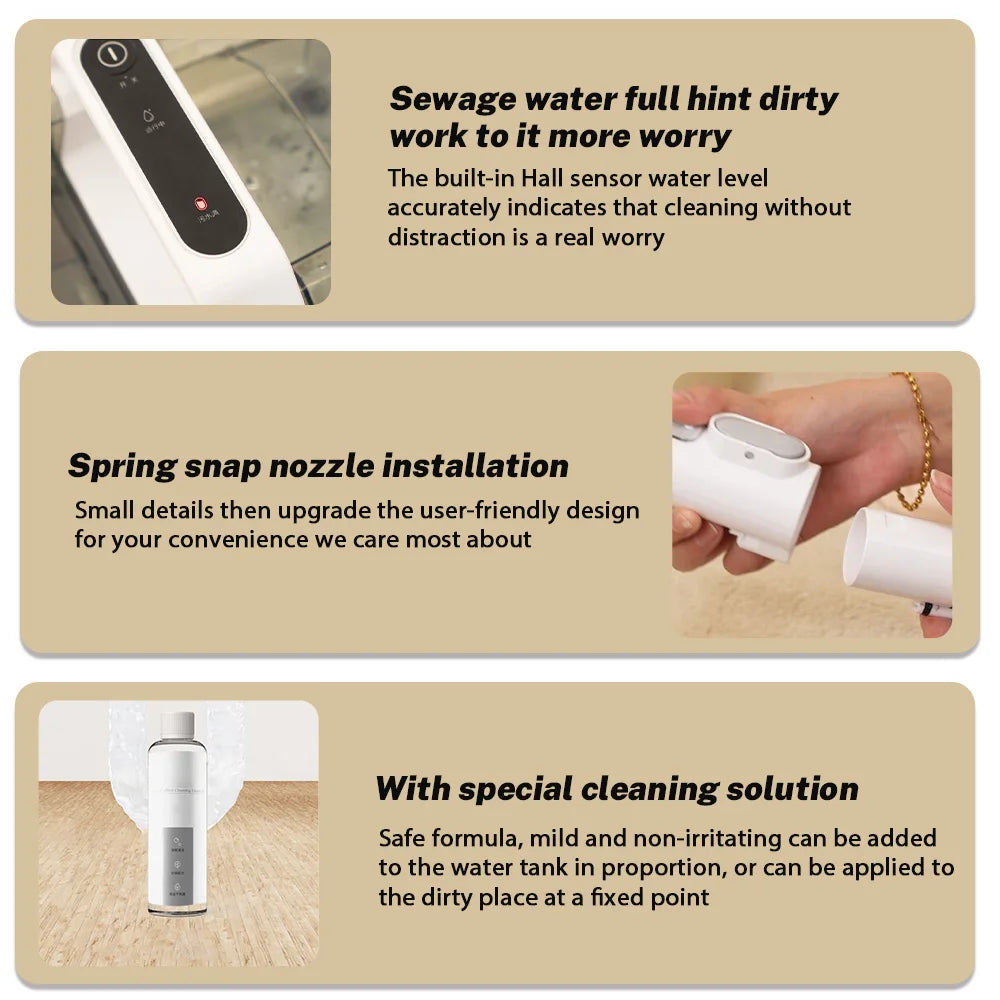 5. Podwójna pojemność zbiornika, ulepszone mycie zraszania, z łatwością poradzi sobie z dużym czyszczeniem. Zbiornik na wodę 1300 ml / zbiornik na ścieki 1100 ml