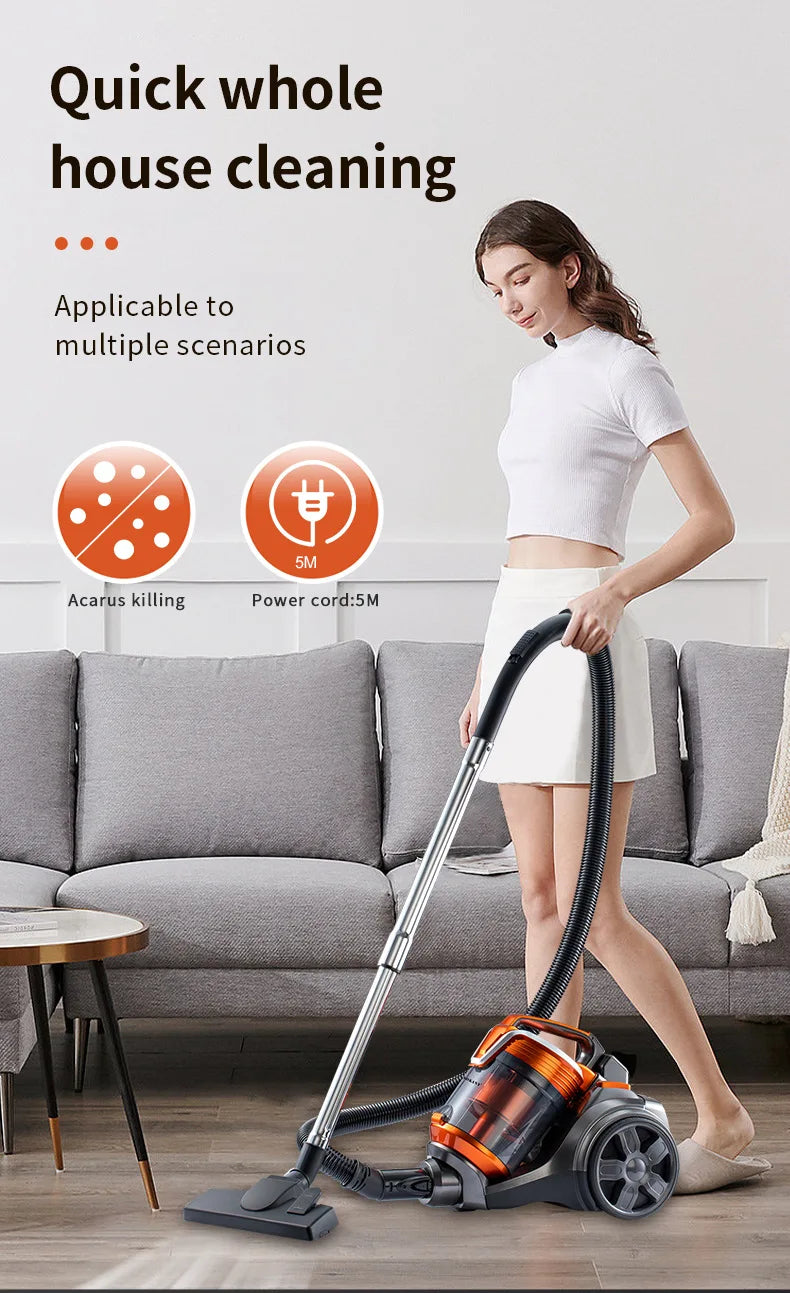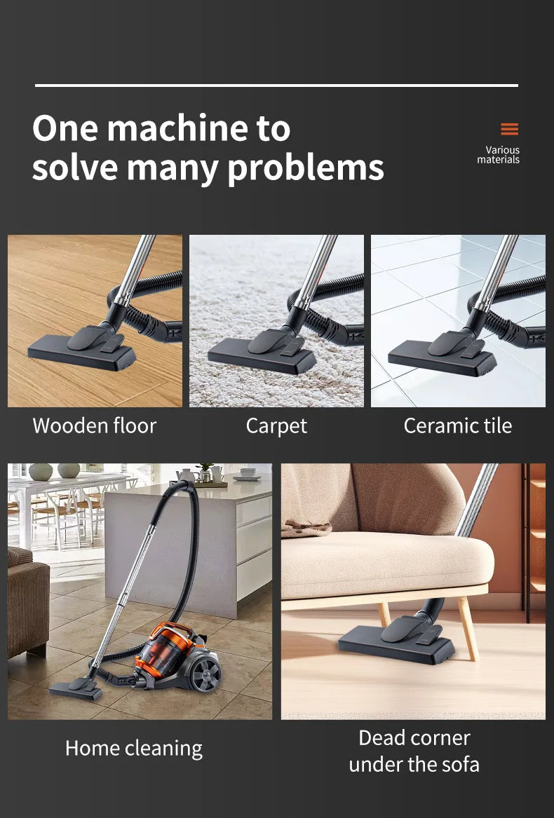 1. [Mocne ssanie] Odkurzacz wyposażony jest w silnik o wysokiej wydajności, zapewniający większą wydajność, oraz technologię multicyklonową, umożliwiającą dogłębne czyszczenie. Z łatwością odkurza wszystkie rodzaje podłóg.