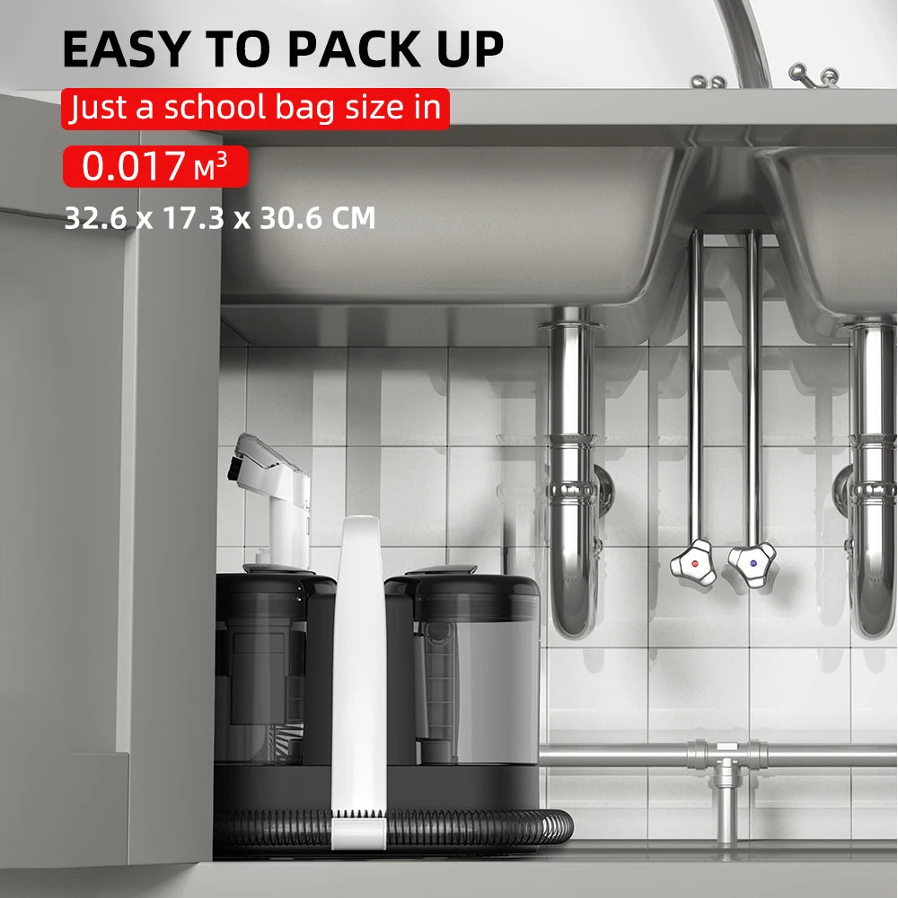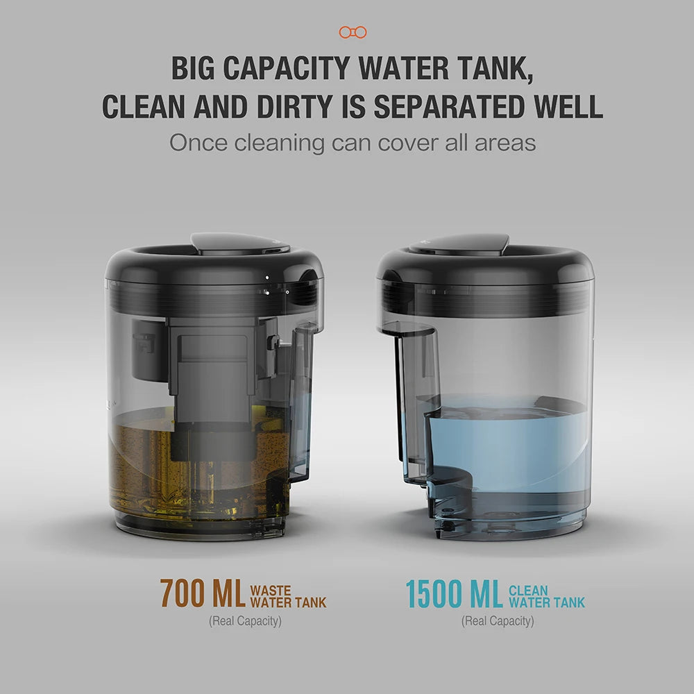 4. PODWÓJNA KONSTRUKCJA ZBIORNIKA: Ten odkurzacz do dywanów jest wyposażony w oddzielny zbiornik na czystą wodę o pojemności 1500 ml i zbiornik na brudną wodę o pojemności 700 ml, co pozwala na czyszczenie dużych powierzchni bez konieczności częstego napełniania lub opróżniania. Zbiornik na czystą wodę można łatwo wyjąć, aby uzyskać czystą wodę, i wylać brudną wodę do czyszczenia.