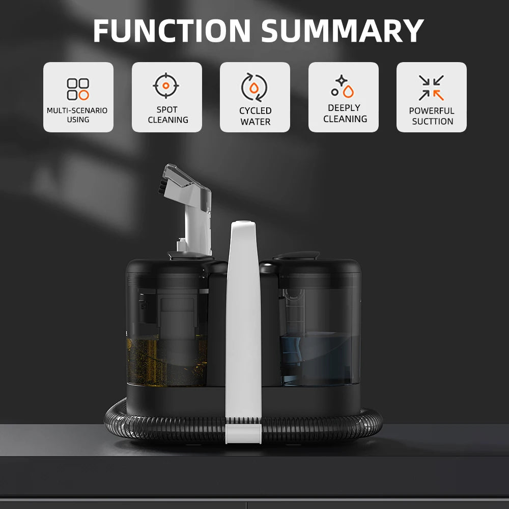 1. WIELOFUNKCYJNY CZYSZCZAK DO DYWANÓW DO WIĘKSZOŚCI TKANIN: Ten przenośny odkurzacz do dywanów nie tylko czyści dywany, ale także usuwa plamy i zabrudzenia z materiałowych sof, materacy, foteli samochodowych, poduszek, zasłon, obrusów, pluszowych zabawek i nie tylko. Nadaje się do wielu zastosowań, takich jak dom, biuro, szkoła, garaż i szopa na narzędzia.
