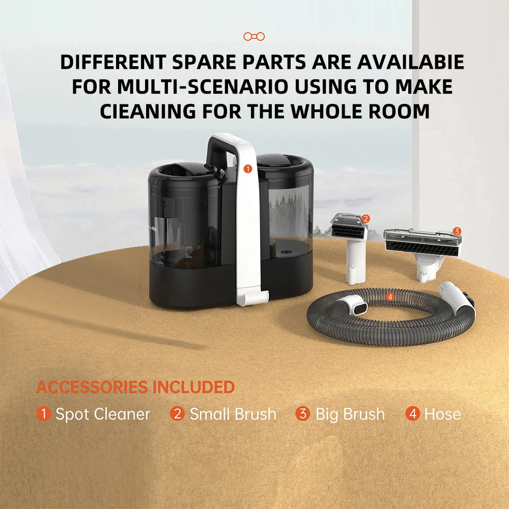 5. ŁATWY W UŻYCIU, ŁATWY W UTRZYMANIU: Odplamiacz do dywanów z łatwością usuwa uporczywe plamy poprzez spryskiwanie, szorowanie i odkurzanie. Wyposażony w wyjmowane i zmywalne szczotki oraz dysze, co ułatwia czyszczenie i konserwację.