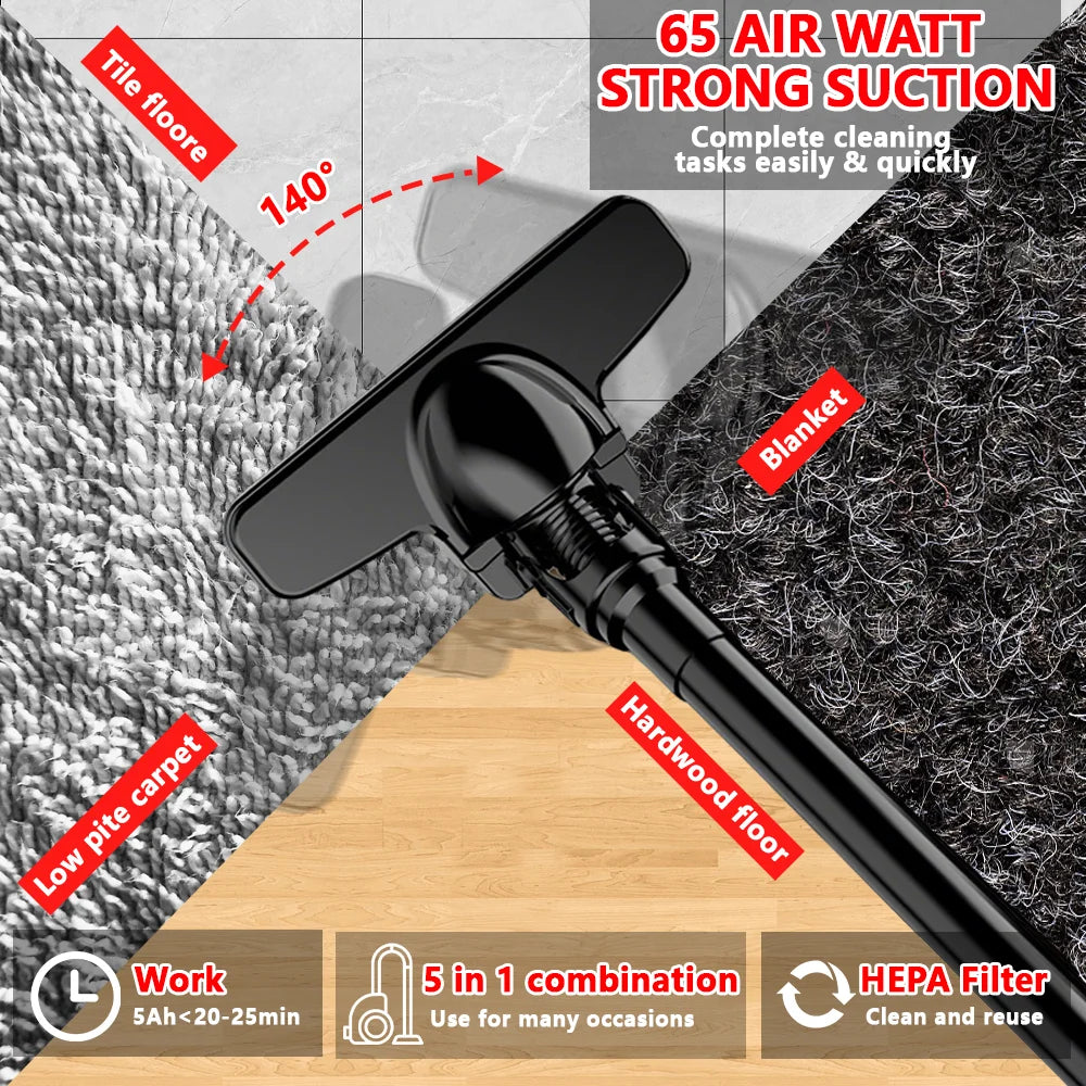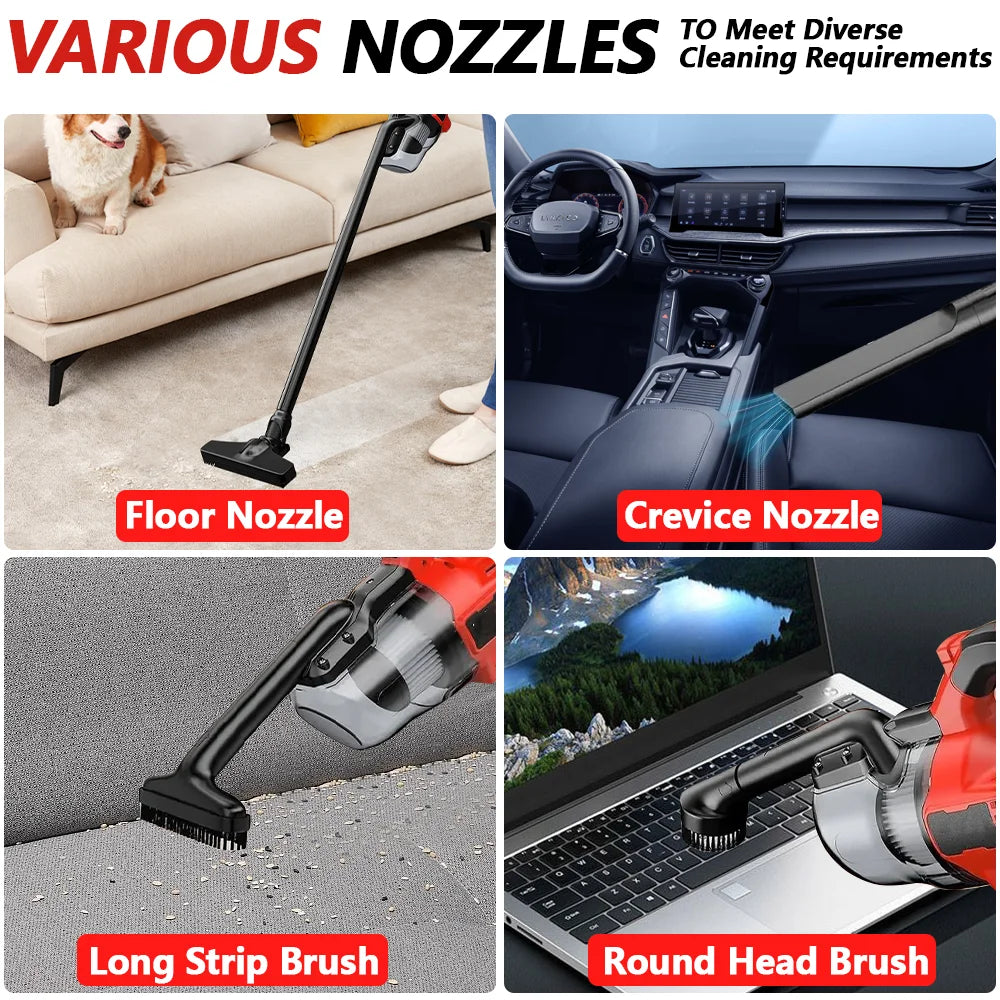 Niezrównana moc ssania: Bezprzewodowy odkurzacz ręczny charakteryzuje się imponującą siłą ssania 100 AW, co czyni go liderem w dziedzinie sprzątania. Dzięki zwiększonej mocy ssania 55 CFM, zapewnia on jeszcze bardziej wydajne sprzątanie. Jego wyjątkowa moc ssania sprawia, że żaden brud nie stanowi większego problemu, co czyni go Twoim niezastąpionym sprzymierzeńcem w sprzątaniu.