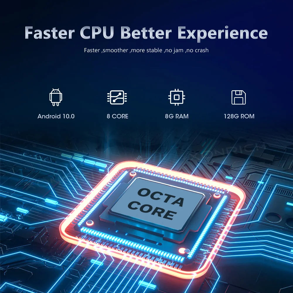 ●8-rdzeniowy, pojemnościowy ekran QLED o wysokiej rozdzielczości i przekątnej 9/10 cala, obsługujący szybki odtwarzacz radiowy, rozdzielczość 1024*600/1280*720 o ultrawysokiej rozdzielczości