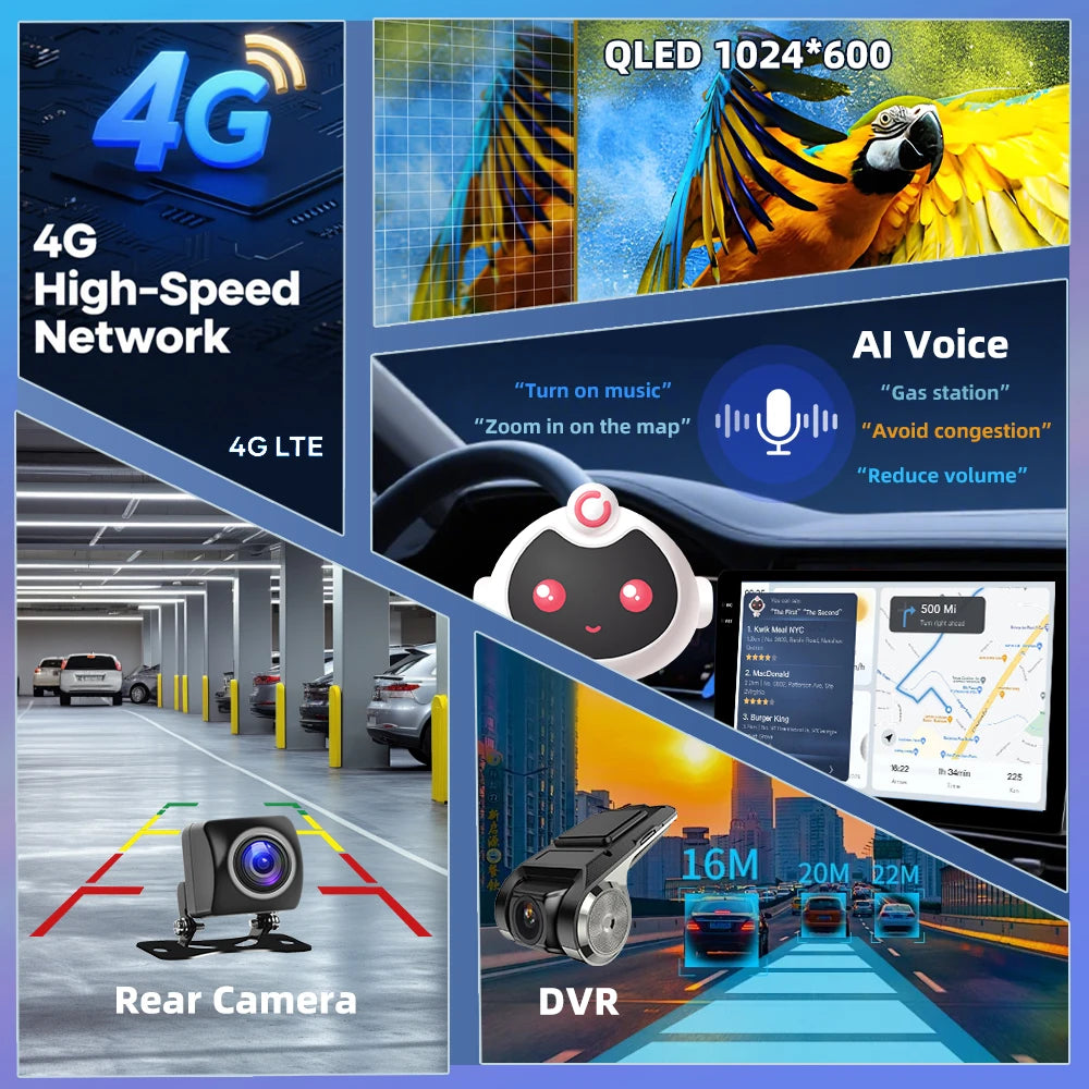 【Opcjonalnie 4G】 Możesz korzystać z szybkiego internetu do streamingu, przeglądania stron internetowych i nawigacji. Bądź w kontakcie w podróży dzięki niezawodnej łączności 4G w samochodzie.